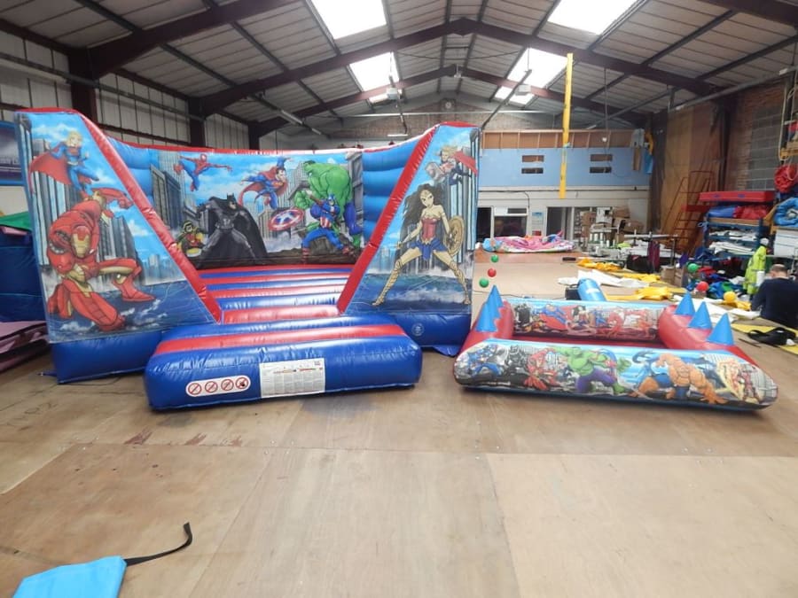 12ft x 12ft super hero v bouncer / suitable to age 12 years / ideal for halls / low ceilings